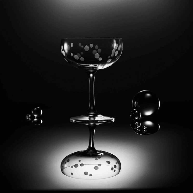 Part of the Chatham Collection, Pop, is an effervescent polka-dot pattern, sand etched into lead-free crystal. With a wide bowl and a shorter stem, the Chatham Pop Coupe Cocktail Glasses are meant for high toasts and long parties. It's perfect for cocktails, champagne, or even delicate desserts.