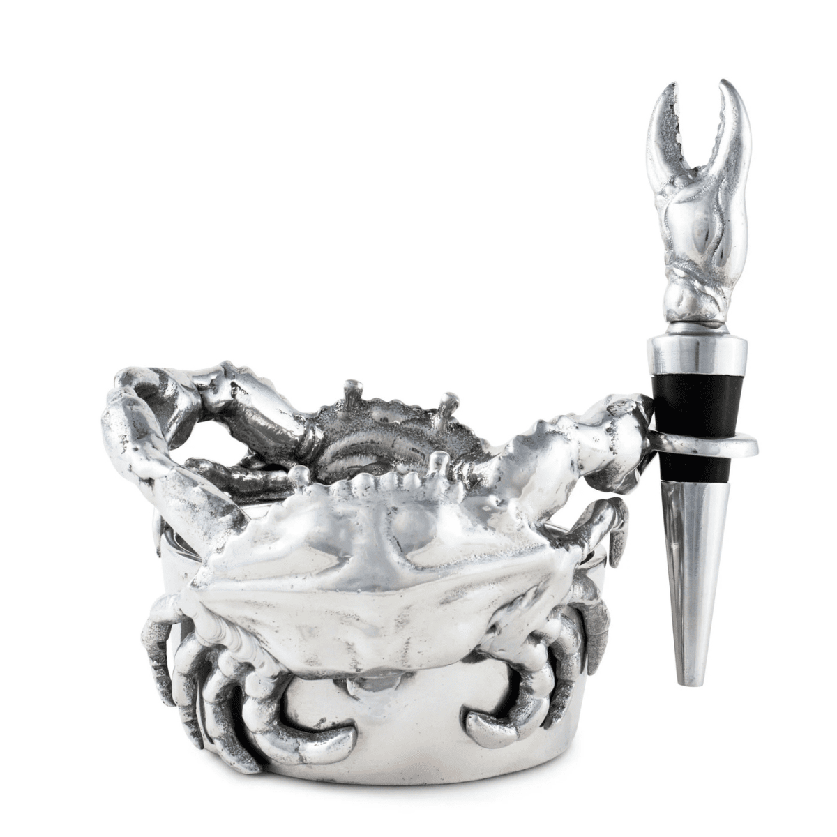 Drink to your love of this delicious creature with Arthur Court's Crab Wine Caddy and Stopper Set.