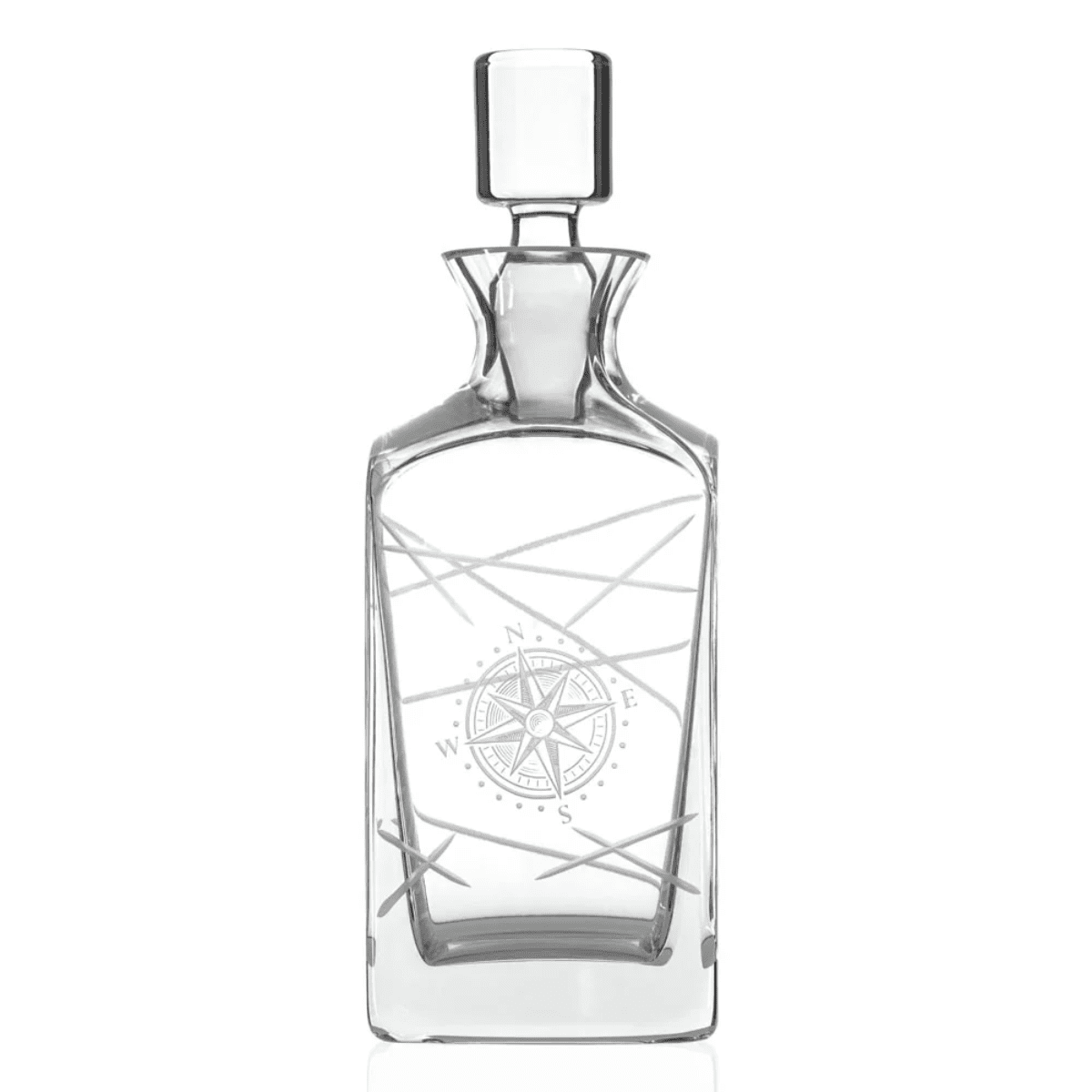 The Mariner’s Star Whiskey Decanter features a tall, refined silhouette accented with an etched nautical star inspired by classic maritime navigation. Its clean lines and commanding presence make it an elegant choice for displaying whiskey, bourbon, or scotch on a bar cart or sideboard.