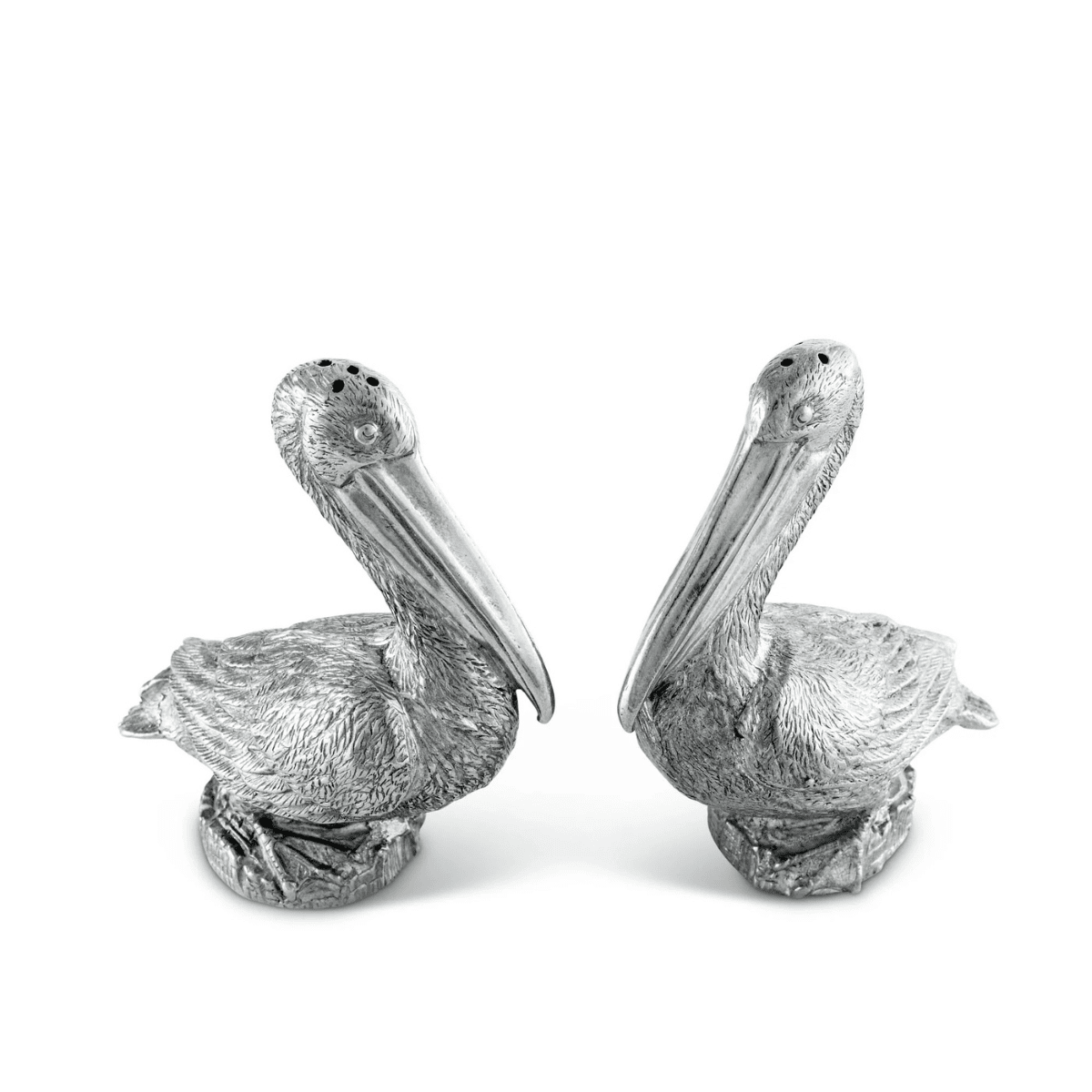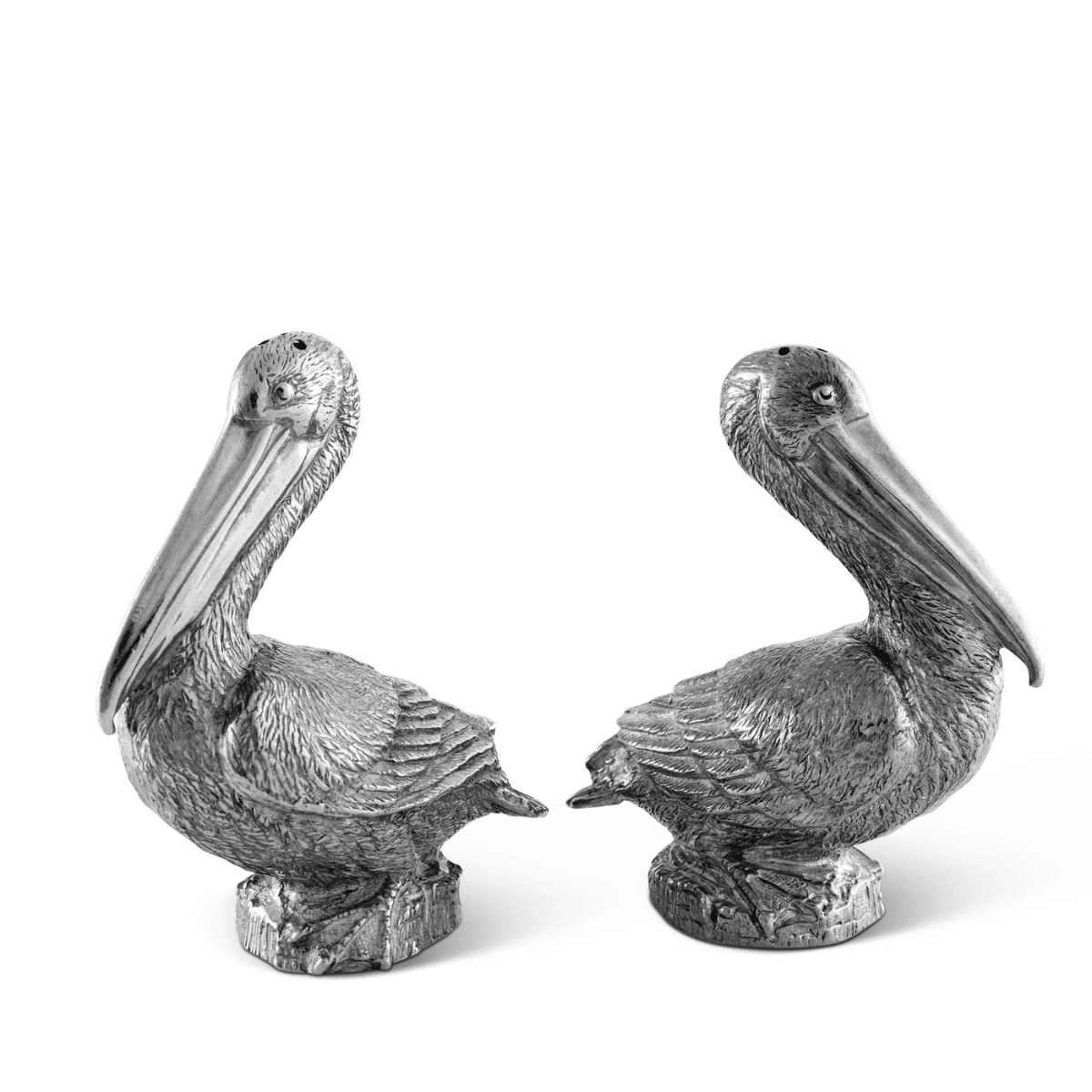 Inspired by a tale of a mother pelican wounding herself in a time of famine to feed her young with her blood, our designers created Vagabond House's Pelican Salt and Pepper Shakers with heartbreaking detail.