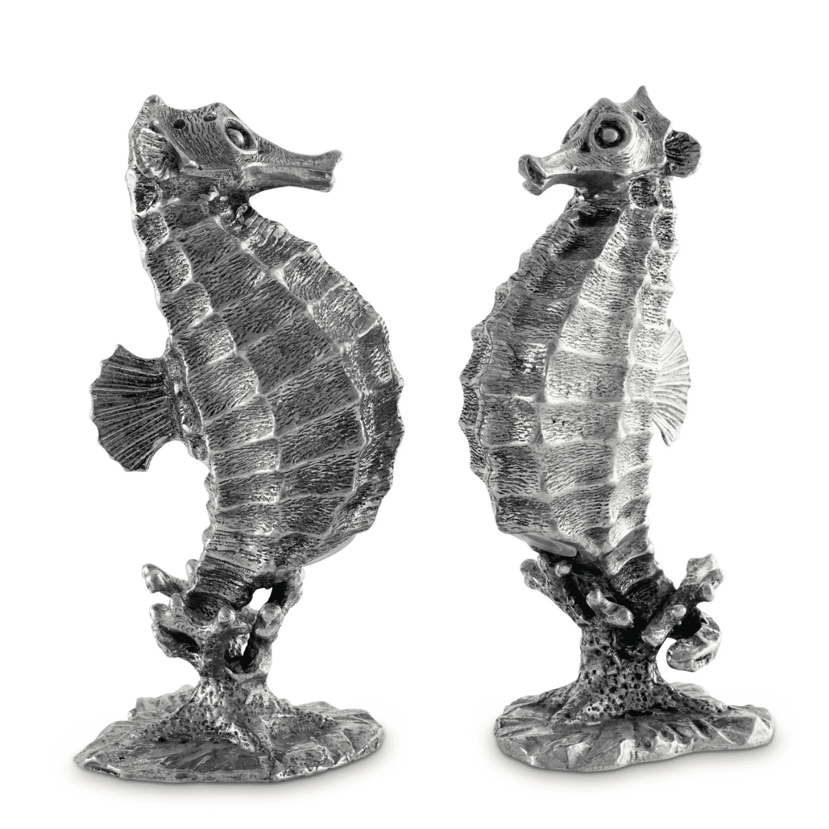 Vagabond House's richly detailed, pure pewter Seahorse Salt and Pepper Shakers add the natural beauty of these playful ocean dwellers to your home. Our designers have created this lovely set, with hand finished detail to serve the salt of the sea and pepper too..