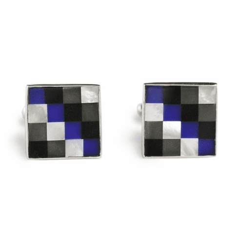 Add sophistication and flair to any outfit with a pair of sterling silver square Hematite & Lapis Check Inlay Cufflinks.