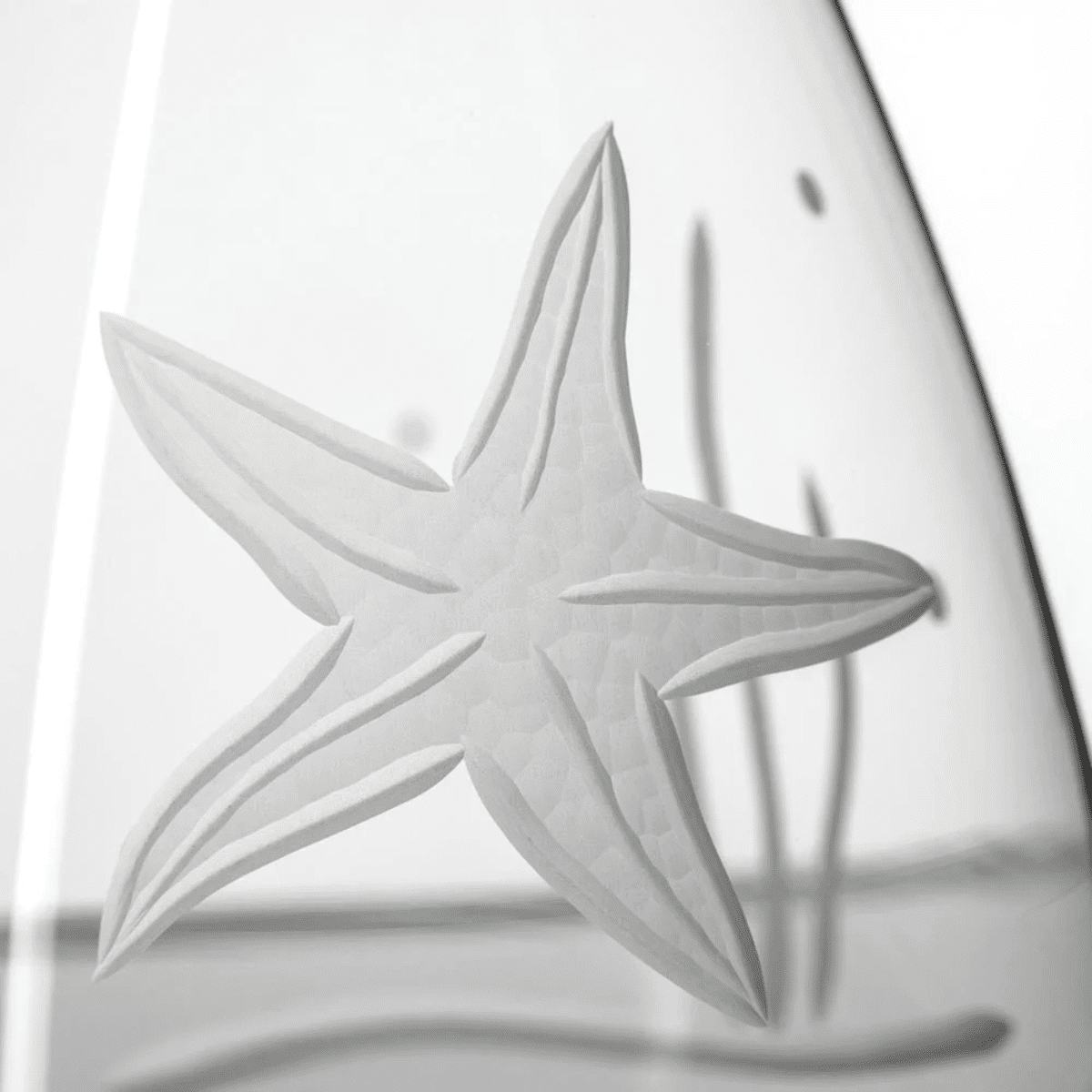 Our Starfish design offers a different seascape pattern on every shape. Seagrass, starfish, bubbles, a lone fish, giving each glass a distinctive charm. The subtle differences unite the collection without mimicking the exact same design.