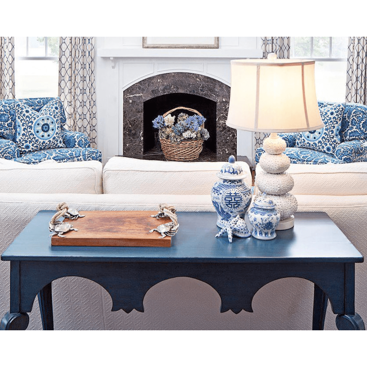 Crafted with a food safe, hand-finish, the Oak board is burled in rich tones of amber. The generously sized tray is finished with four intricately detailed, pewter crabs, each holding an end of the sturdy knotted marine rope handles firmly in their pincers.